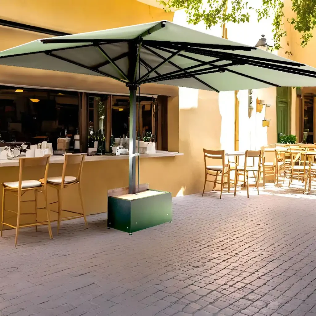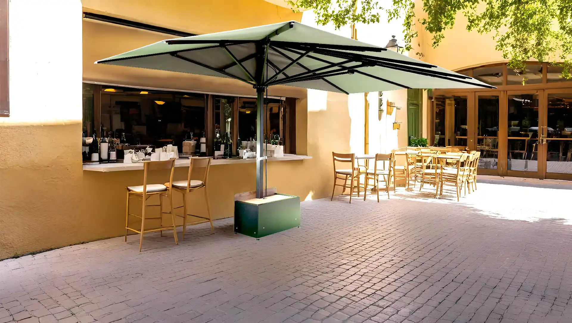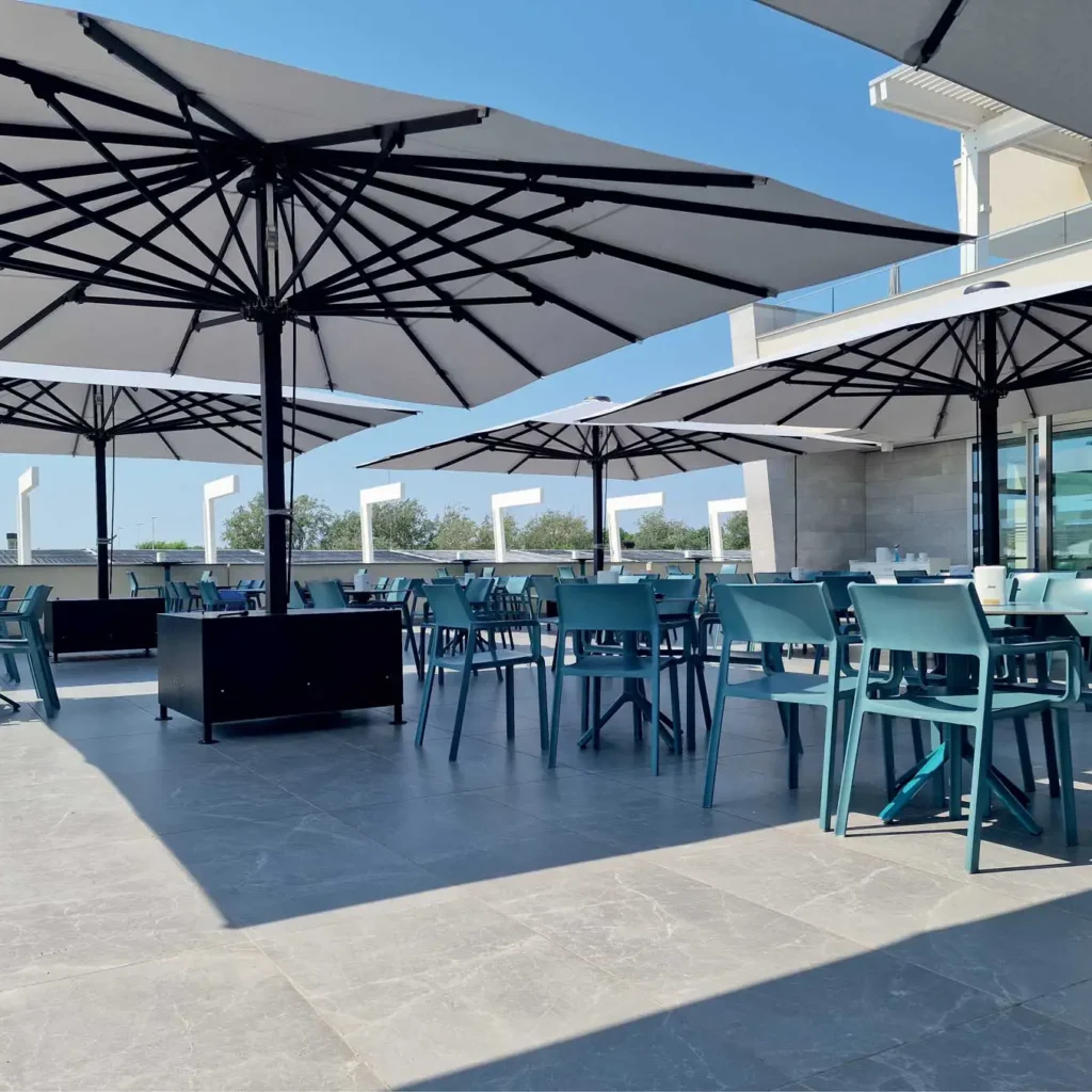 Siamo specializzati nella progettazione e costruzione di ombrelloni giganti per ristoranti, locali e tutte le attività che desiderano trasformare i propri spazi esterni in aree confortevoli, eleganti e protette. Grazie alla nostra esperienza e passione per il design, realizziamo soluzioni su misura che non solo garantiscono una copertura ottimale, ma donano anche un tocco di raffinatezza e modernità.