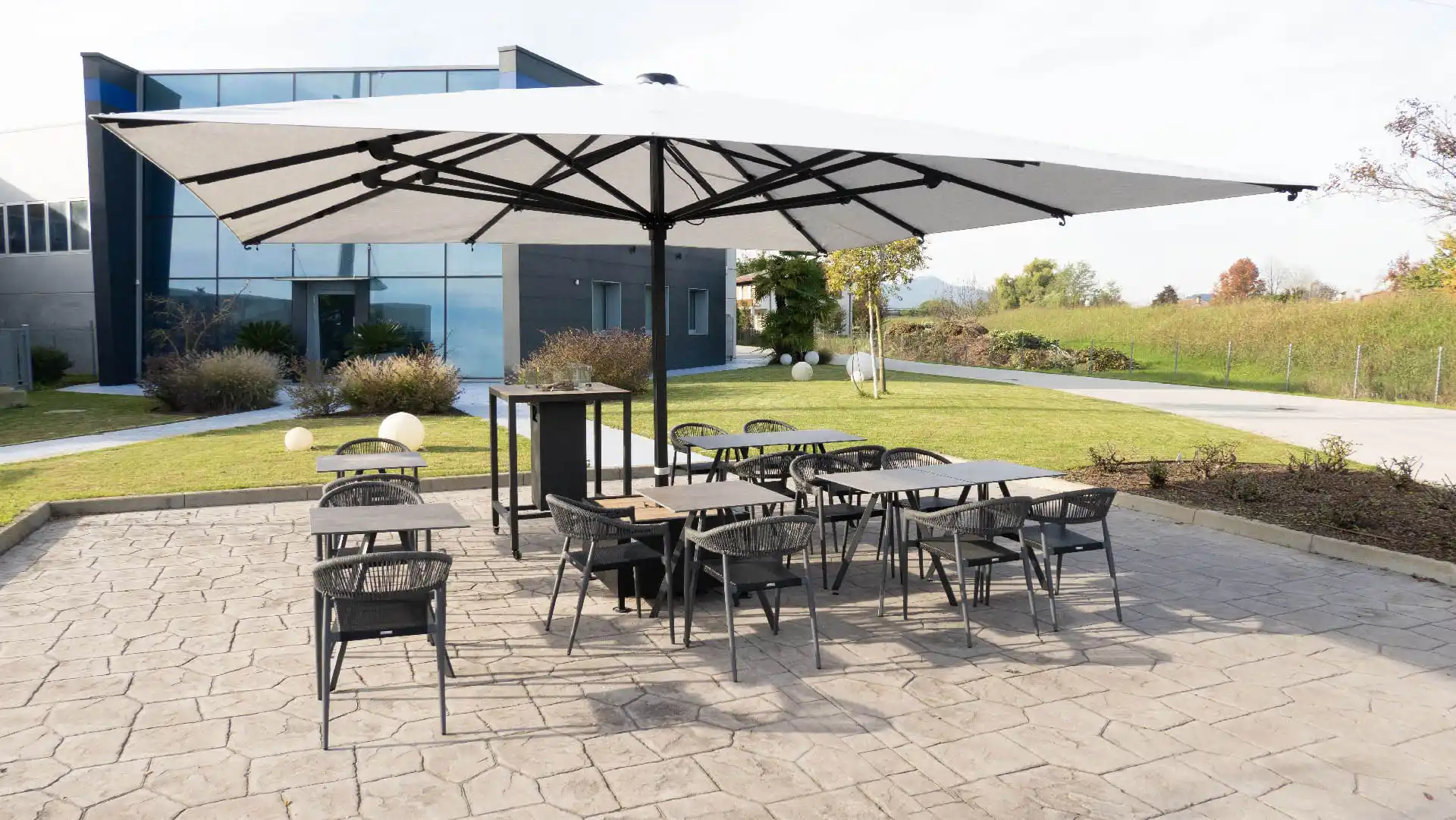 Che si tratti di coprire una grande terrazza, un giardino o un'area all'aperto, i nostri ombrelloni sono progettati per resistere alle condizioni climatiche più impegnative, offrendo al tempo stesso praticità e un'estetica ricercata. Ogni nostro progetto è pensato per valorizzare al meglio gli spazi esterni, rendendoli accoglienti e funzionali in ogni stagione.